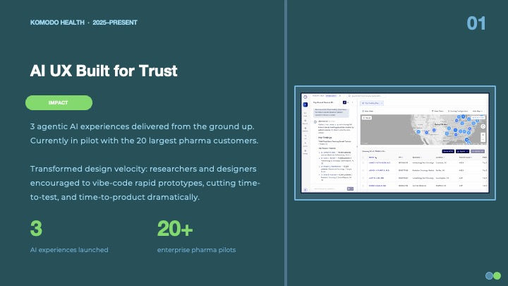 Leading teams of researchers and designers building Agentic AI for complex healthcare data platforms.
