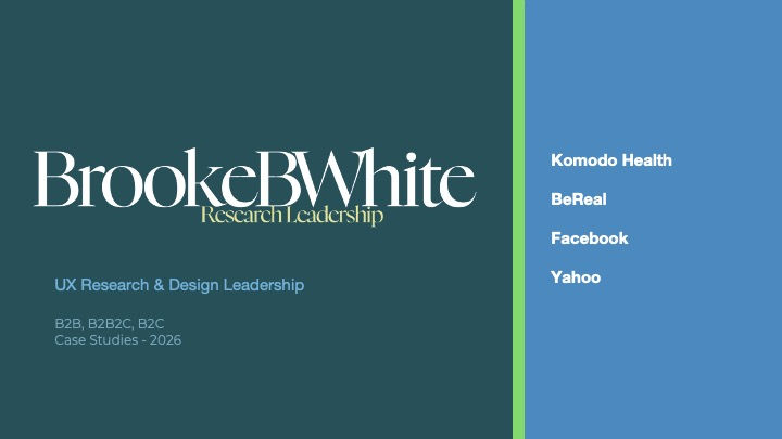 Built and led research & design practices and teams for: Facebook, Yahoo, BeReal, Disney Interactive, and more.